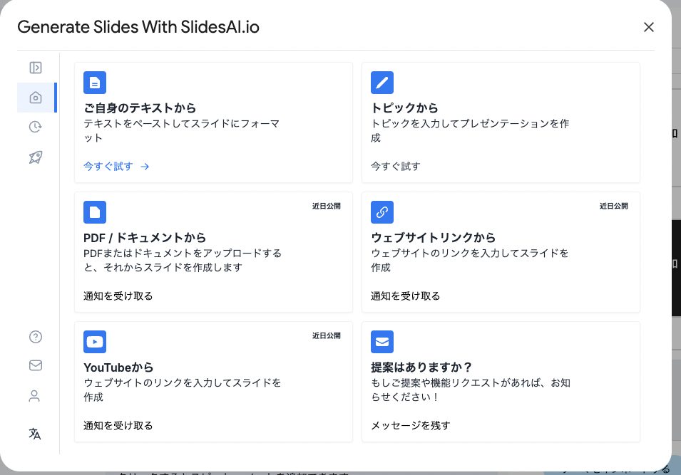 • SlidesAI:文章をもとに自動でスライドを作れる