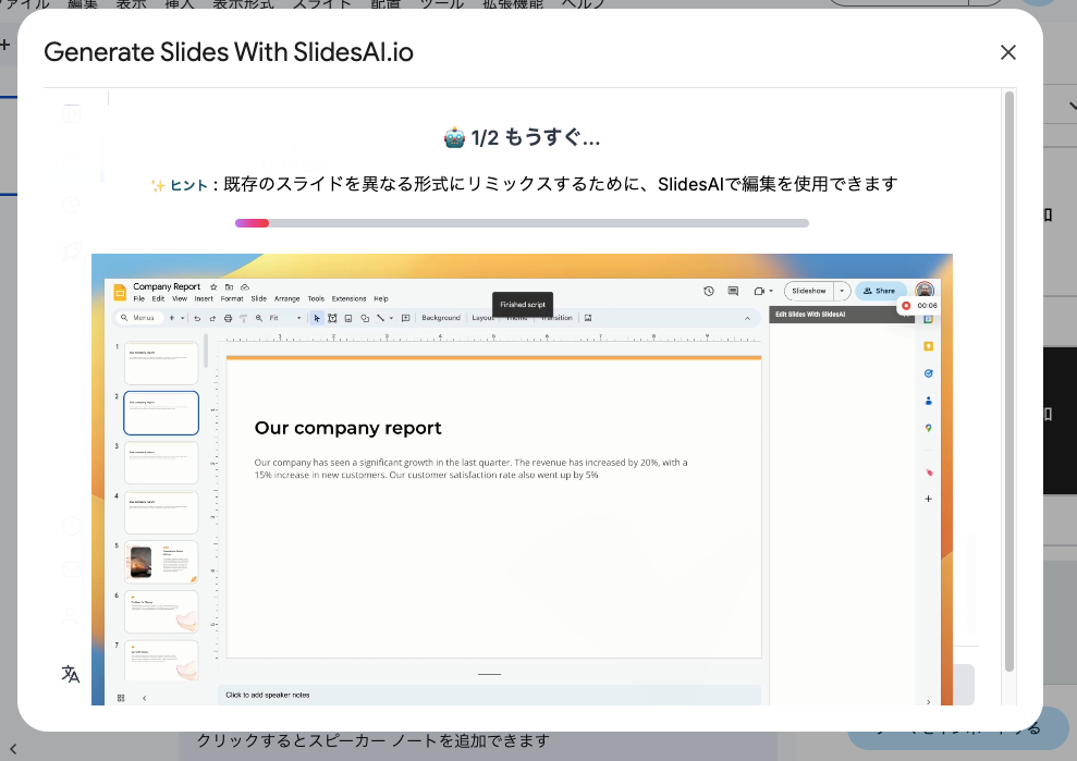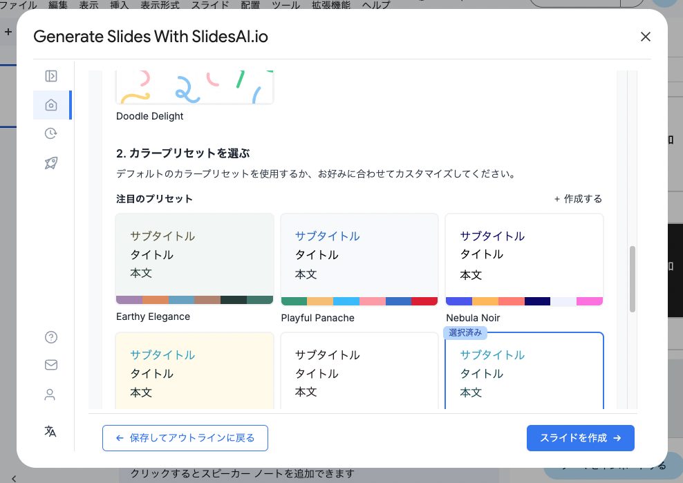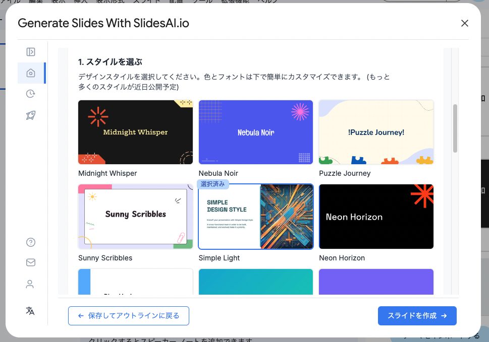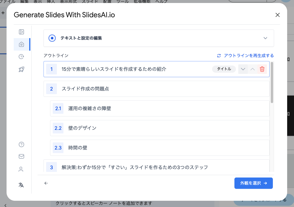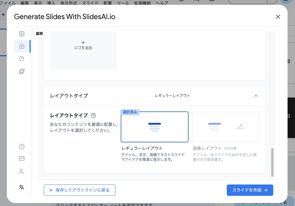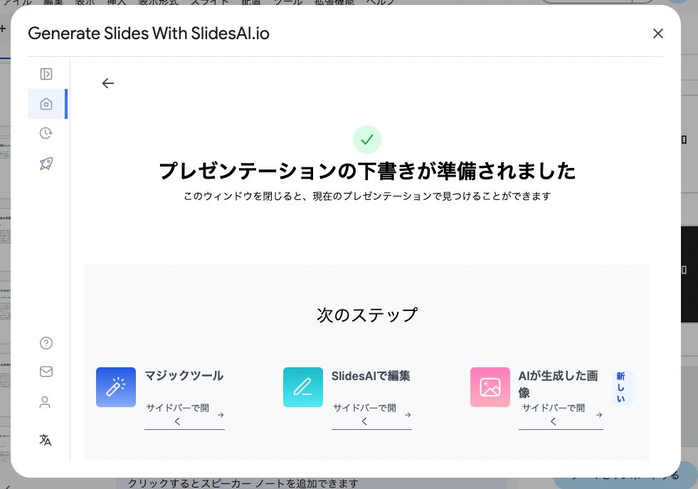 • デザインや配置を考えなくてよい(SlidesAIが担当)