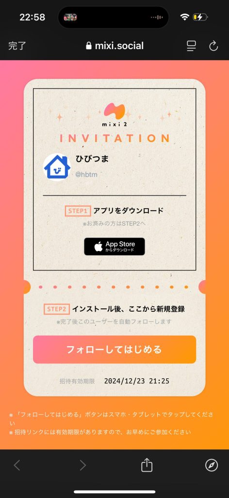 懐かしいmixiといえば、あの「招待制」を覚えていますか?mixi2も現在は招待制となっており、利用中のユーザーから共有されたリンクを使って登録します。