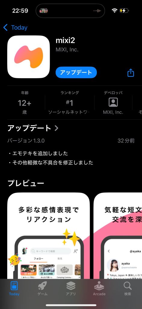 最初のステップはmixi2アプリのダウンロードです。