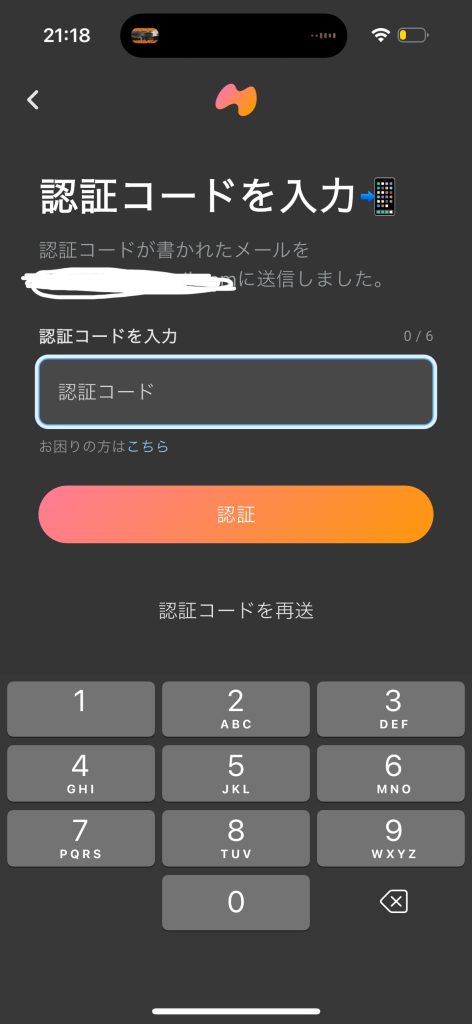 メールアドレスを登録すると、すぐに認証用のメールが飛んできます。