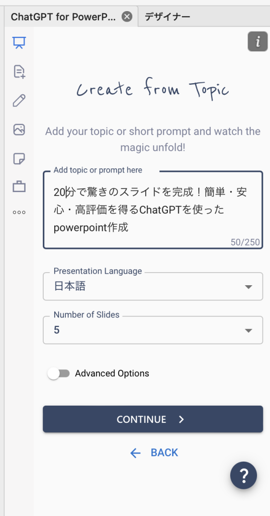 まず、スライドごとにChatGPTに具体的な指示を出しましょう: