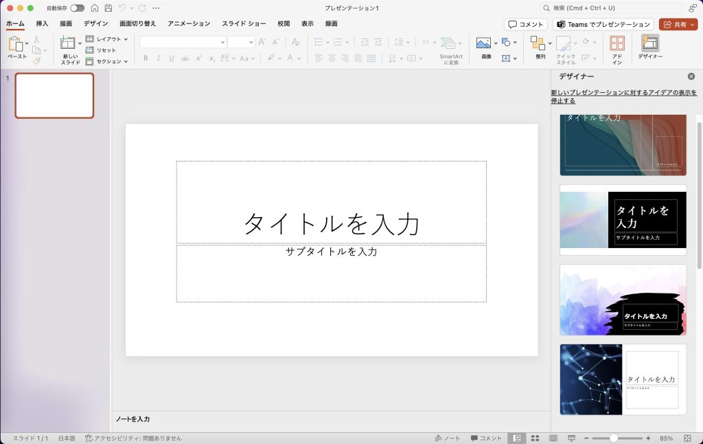 さらに、ChatGPTの提案を元にPowerPointでテンプレートを選ぶと、作業がさらにスムーズになります。テンプレートは次の点に注意して選びましょう: