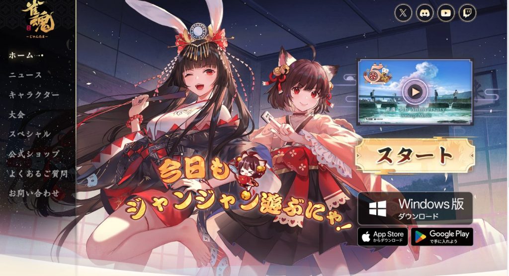 キャラクターが可愛く、アバターやキャラボイスを入手できるアイテム課金性。段位選、仲間内での対戦、大会など対のしむことができ、あがり牌の表示など見やすい要素がある。