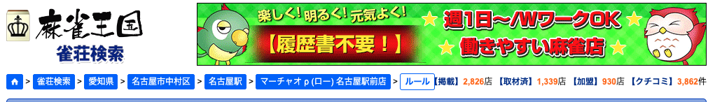 麻雀王国で全国の雀荘が検索できます。