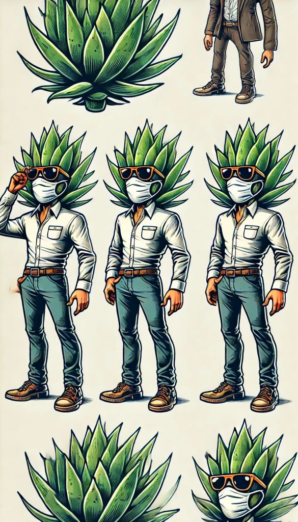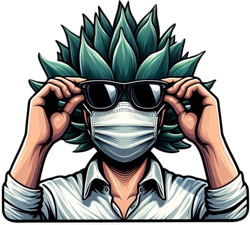 植物のアガベを擬人化し、サングラスとマスクをしてください