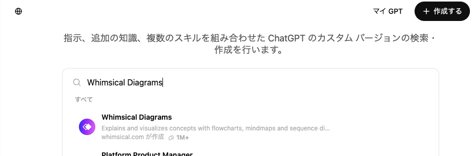 ChatGPTのMyGPTsでWhimsical Diagramsを検索する
